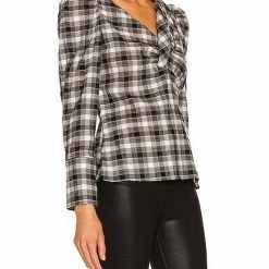 Cheap 🎉 Jonathan Simkhai Rory Plaid Poplin Cutout Draped 👚 Shirt in Black Plaid for 👩 women 🔥