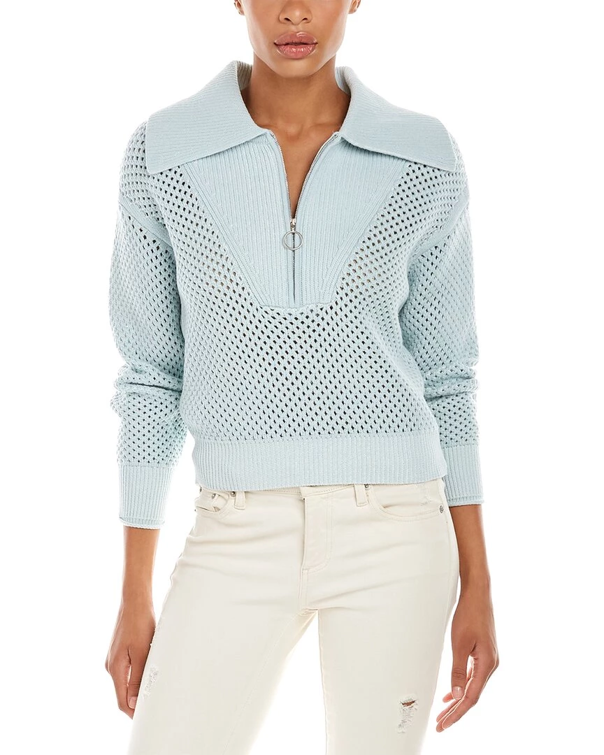 - Ariella Wool-Blend Pullover In Tide/White With Open Knit, Spread Collar, Ribbed Trim And Furled Cuffs