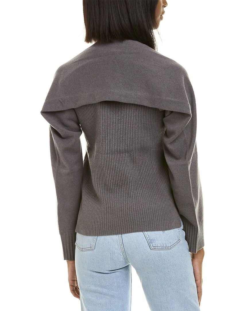 - Aubrielle Cashmere Sweater In Charcoal With Ribbed Fabric, Mock Neck, Side Slits At Hem And Attached Cropped Shawl Cardigan With Split Cuffs