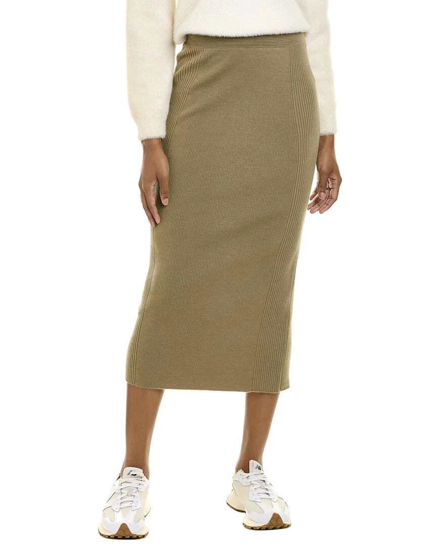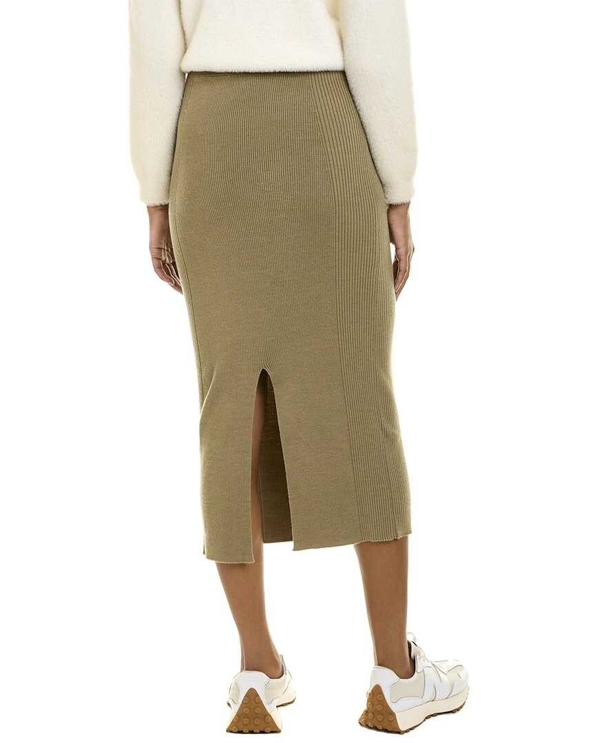 - Brooklyn Wool-Blend Midi Skirt In Moss With Ribbed Fabric, Elasticized Waist And Split Hem