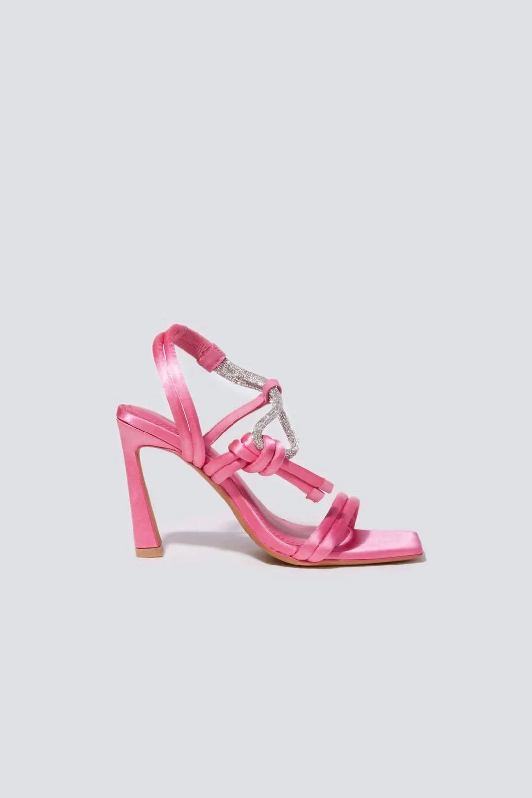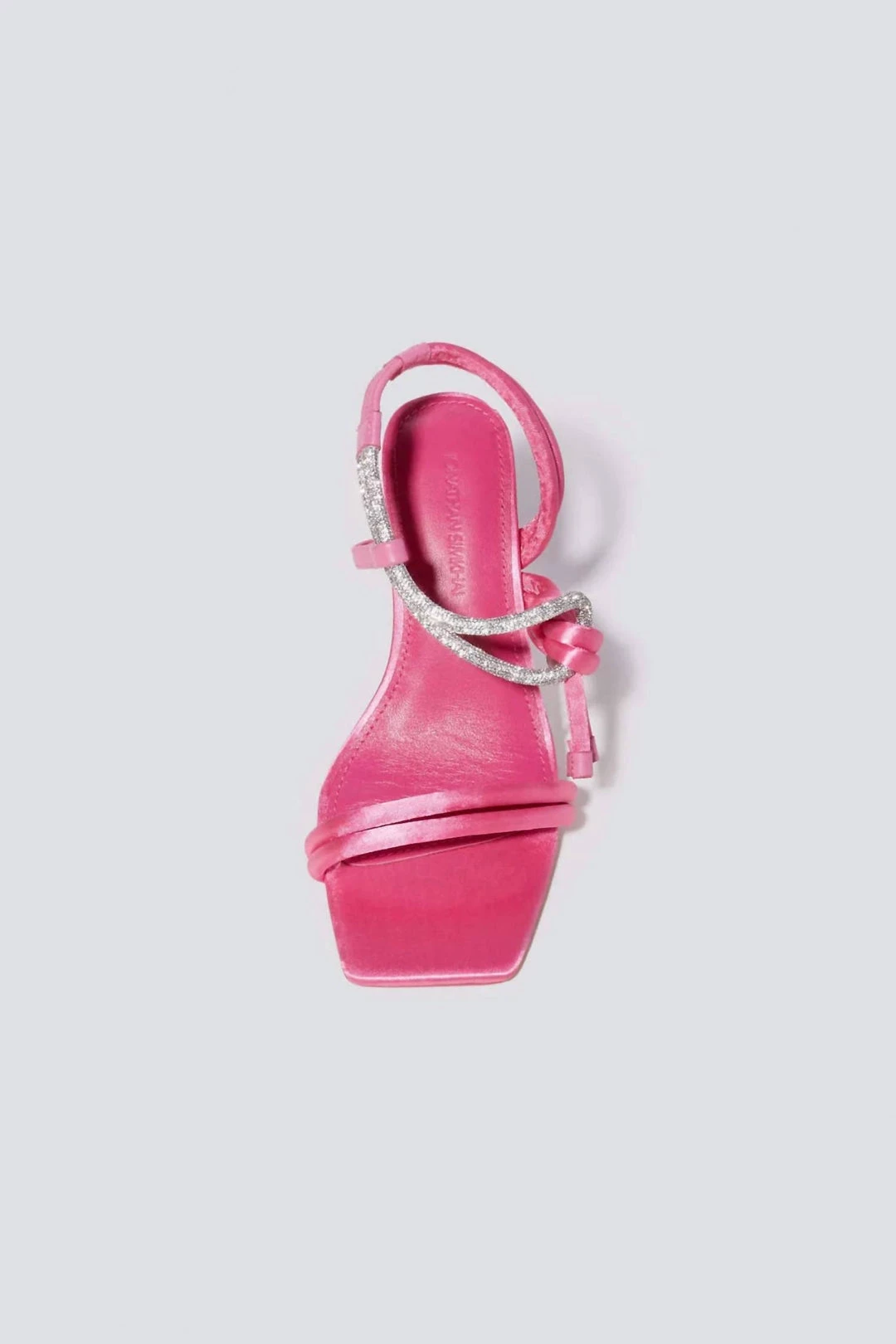 Crafted from supple lamb leather with notes of satin throughout, the label’s Cassie sandals are roped with a crystal-embellished strap for a subtle dose of glamour. Wear yours with a fresh pedicure. Elasticized ankle strap.Fits true to size, order your normal sizeSquare open toeSlip onSatin and rhinestone-embellished straps4″ satin-covered heelFabric/rhinestone upper, leather lining and soleMade in Brazil