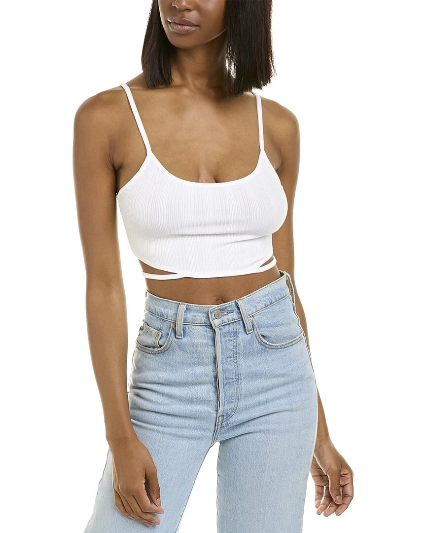 - Elliana Tank In White With Ribbed Fabric And Strappy Cropped Hem
