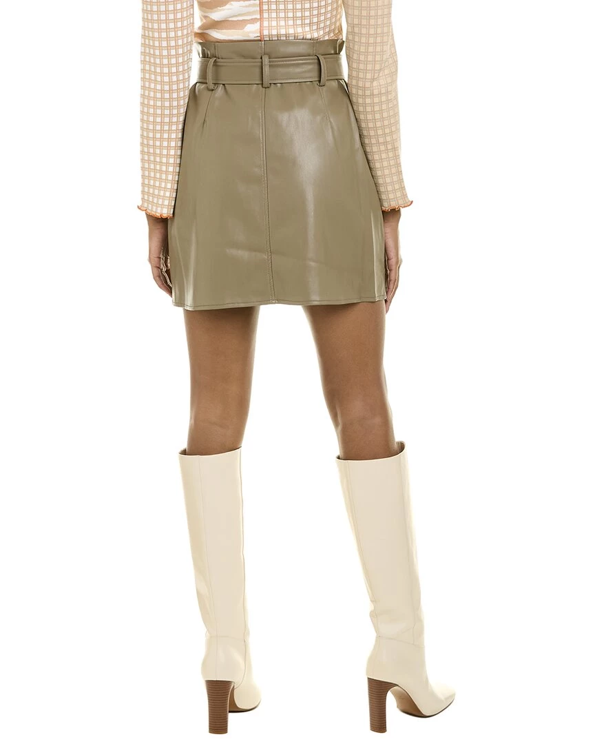 - Jimena Mini Skirt In Poplar With Faux Leather Construction, Belted Waist, Dual Front Pockets And Dual Front Slits At Hem