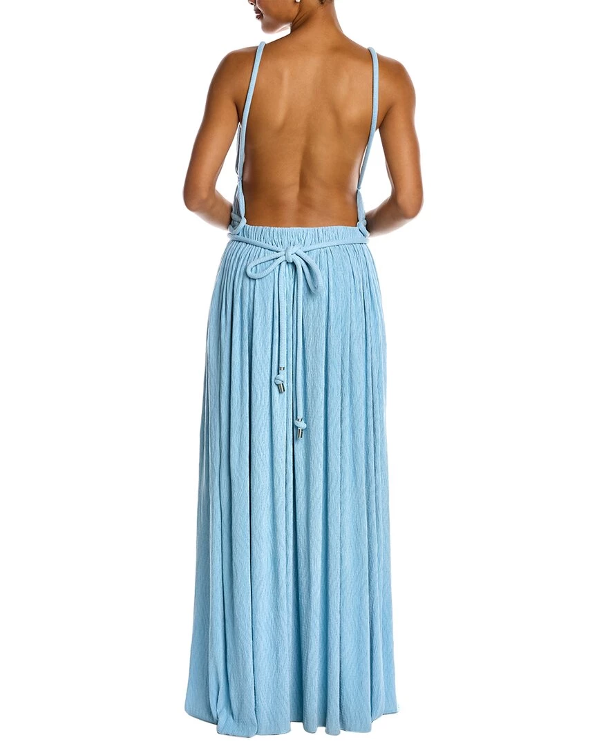 - Lillee Maxi Dress In Horizon With Pleated Fabric, Halter Neck With Knot Accents And Open Back With Self-Tie Detail