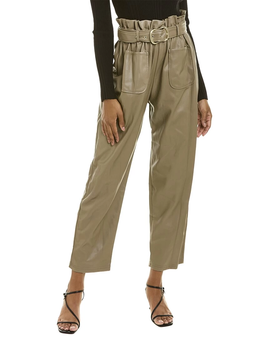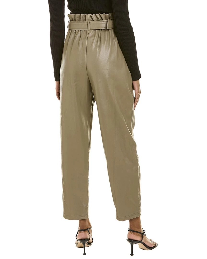 - Renata Pant In Poplar With Faux Leather Construction, Elasticized Belted Paperbag Waist And Dual Front Patch Pockets