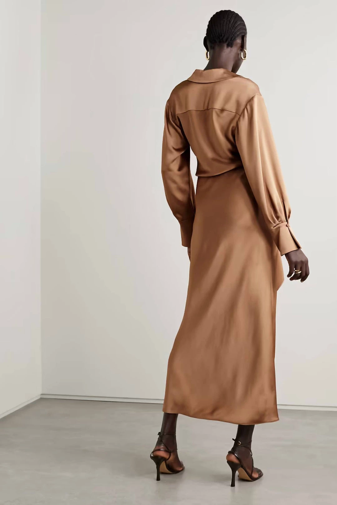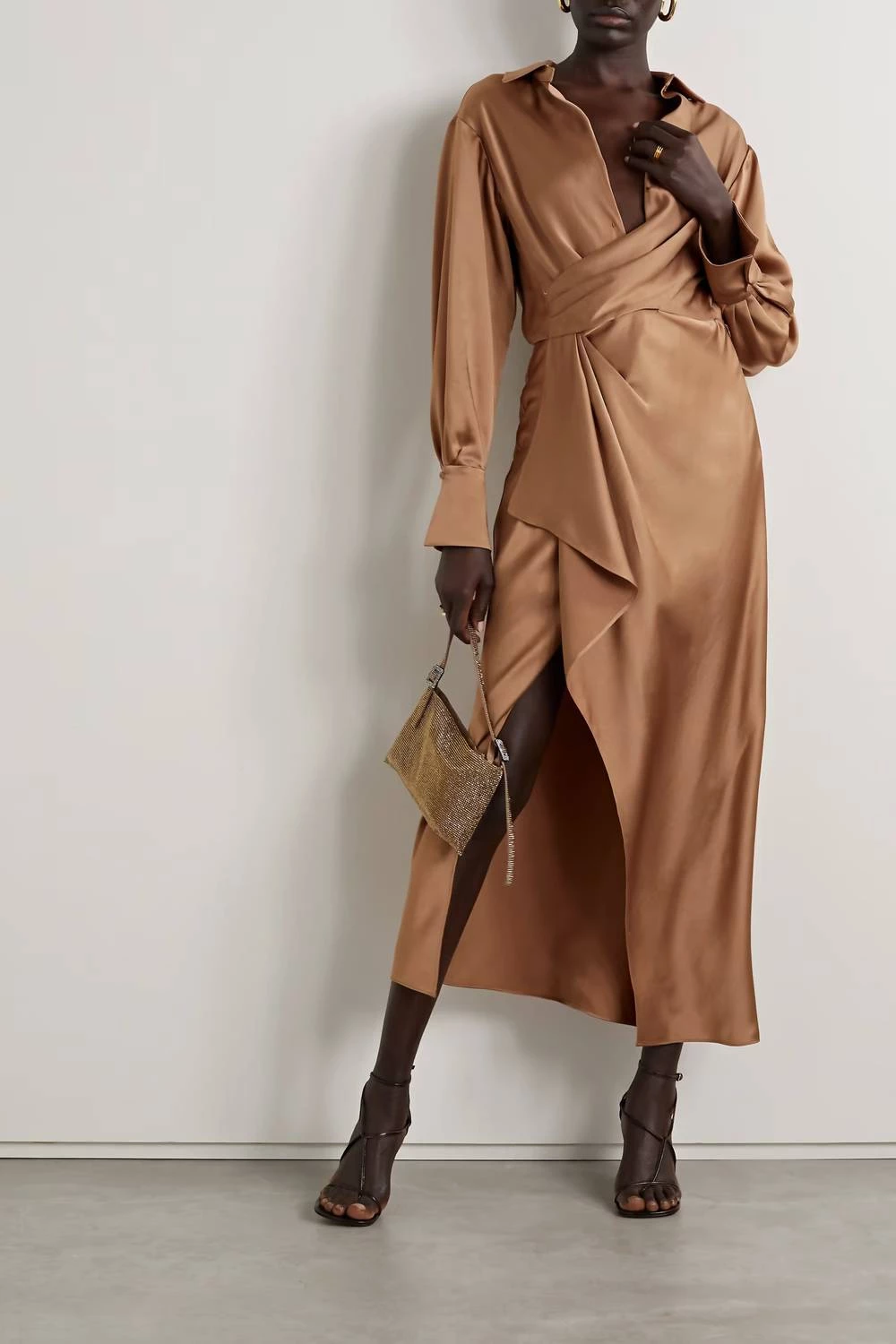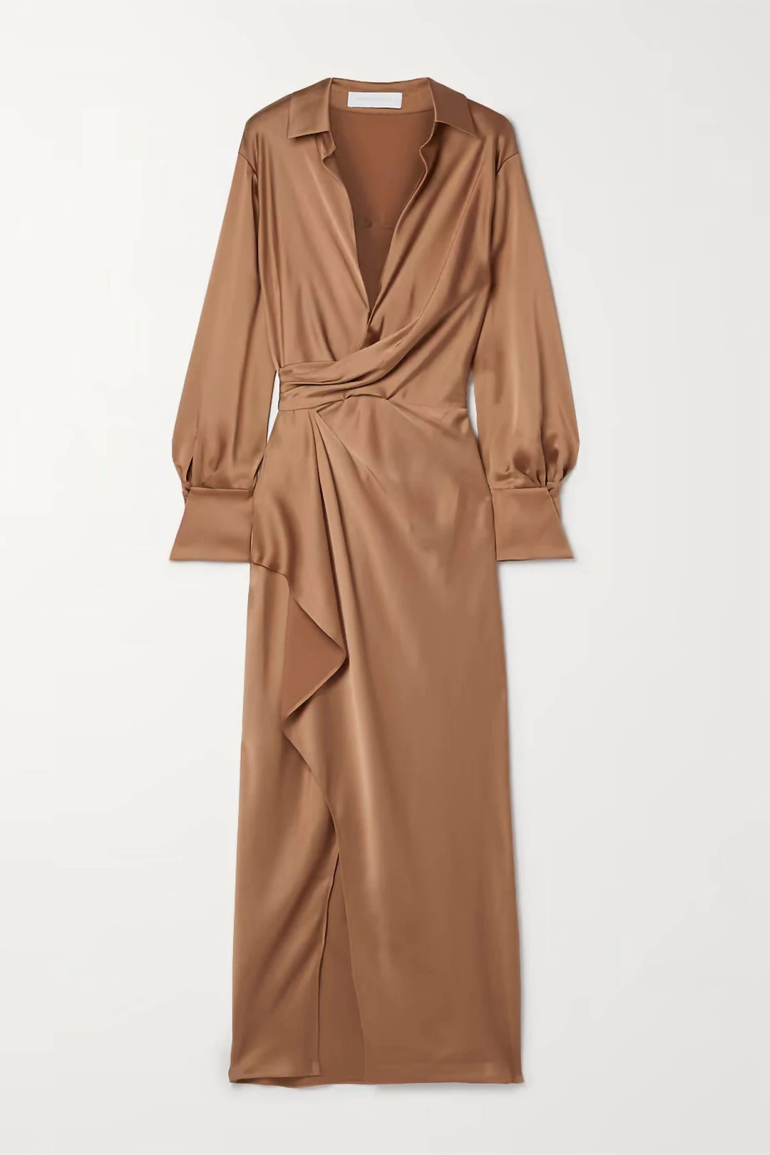 Budget 🥰 Jonathan Simkhai Talita Woven Drape Front Midi 👗 Dress in Latte for 👩 women 😀