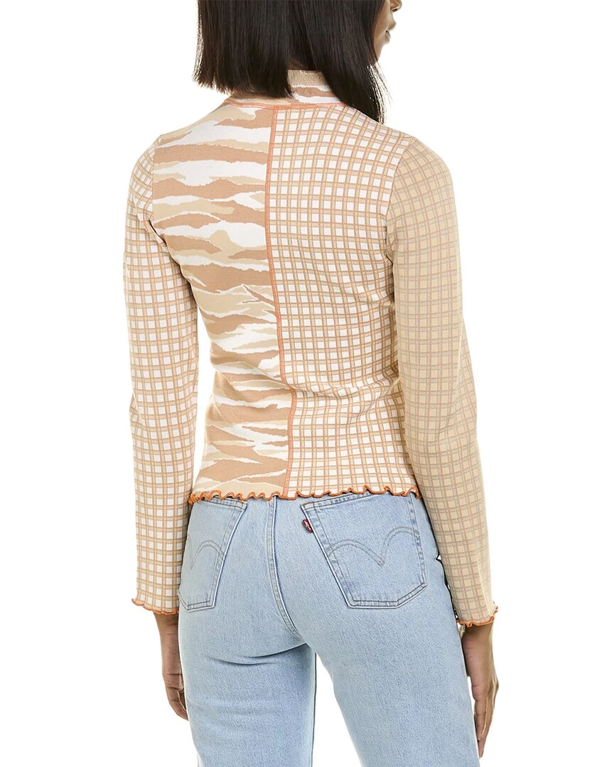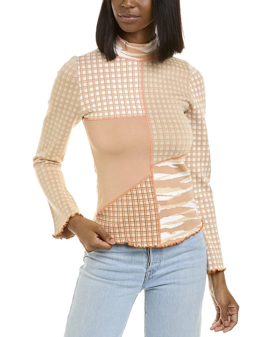 - Xena Top In Caramel Combo With Stretch Knit Fabric, Turtleneck And Lettuce Edge Trim